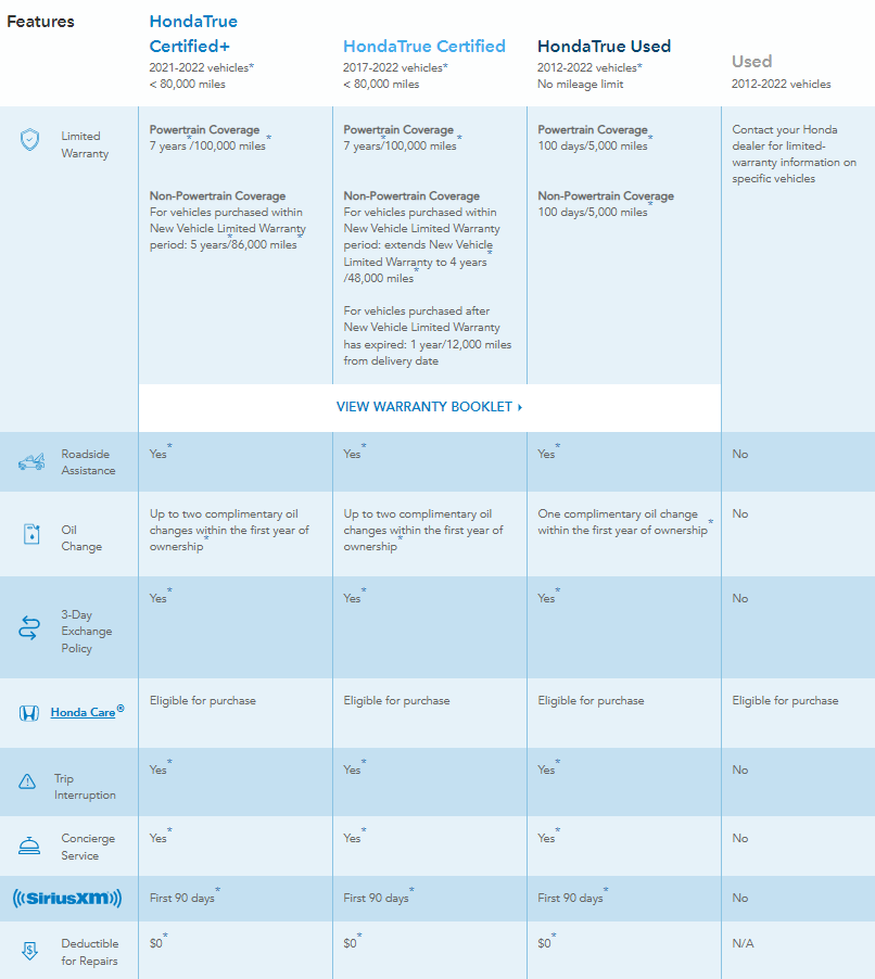 Every vehicle includes a Honda-Backed 7-Year/100,000-Mile* Powertrain Limited Warranty, so you can feel confident at the dealership and on the road.